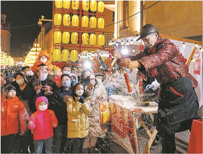 糖葫芦起源于南宋,是北方冬季常见小吃,青岛人称之为“糖球”。青岛本地“老字号”高家糖球是萝卜·元宵·糖球会的常客,通过技术创新打破糖球仅限冬季食用的传统,让招牌糖球四季可享。如今,高家糖球制作技艺已列入山东省第五批省级非物质文化遗产名录,还走出国门,成为传播中国传统美食文化的载体。