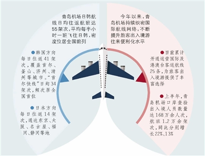 今年以来,青岛机场持续织密国际航线网络,不断提升旅客出入境游往来便利化水平,目前累计开通运营国际及港澳台客运航线25条,为旅客出入境游提供了丰富的选择。今年上半年,青岛机场口岸查验出入境人员数量达168万余人次,航班1.2万余架次,同比分别增长22%、13%。其中,内地居民出境57万余人次,外籍旅客入境数量近24万人次,同比分别增长15%、46%。从青岛机场口岸入境的外籍旅客中,以来华旅游为目的的旅客占61%,往来国方向以韩国、日本、俄罗斯、美国、英国等国家居多。