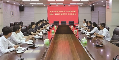 ■日前,胶州法院举行青年理论学习小组研讨暨新录用公务员见面会,集体学习《深入贯彻中央八项规定精神学习教育中央指导组工作座谈会会议精神》等。胶州法院党组书记、院长白强勉励新录用公务员尽快适应角色、扎根岗位,在司法实践中锤炼本领,为法院工作高质量发展贡献青春力量。