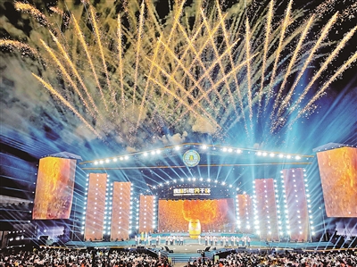 晚8时,开幕式在动感热烈的歌舞表演中拉开了序幕。今年开幕式舞台采用了国内顶尖声光设备,集成全息投影、激光、焰火等技术,通过多维度视觉特效与空间叙事结合,构建起虚实交织的沉浸式艺术场景,打造一年一度的狂欢时刻。