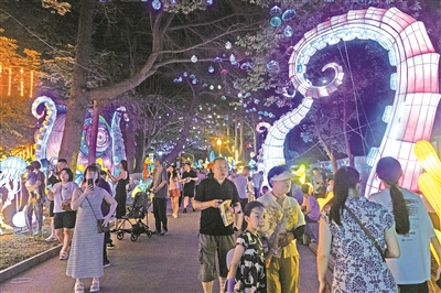 本报7月18日讯 18日晚7时许,伴随着巡游队伍在中山公园精彩亮相,2025年“青岛之夏”艺术灯会正式拉开璀璨帷幕,现场人潮涌动,共赴一场山海文化光影之约。作为第三届青岛城市公园节的重要组成部分,本届灯会以“山海织绮梦 千灯映星湾”为主题,精心打造近年来中国北方夏季规模最大的艺术灯会,活动持续至10月8日。此次灯会由市园林和林业局主办,青岛报业传媒集团、自贡文旅集团与市市级公园管理服务中心共同承办,旨在为市民游客呈上一场集文化、科技、互动于一体的光影盛宴。