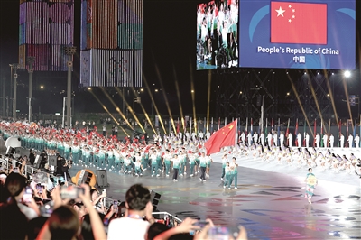夜幕下,成都天府国际会议中心华灯璀璨。20时,世运会开幕式开始,伴随着欢快的旋律,来自116个国家/地区的参赛人员依次入场。21时20分,成都2025年第12届世界运动会宣布开幕!