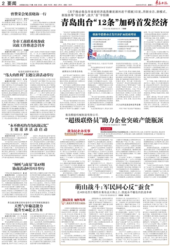 | 青岛日报社(集团)数字报纸(包括《青岛日报》、《青岛早报》、《青岛晚报》、《老年生活报》)的一切内容(包括但不限于文字、图片、PDF、图表、标志、标识、商标、版面设计、专栏目录与名称、内容分类标准以及为读者提供的任何信息)仅供青岛日报社(集团)读者阅读、学习研究使用,未经青岛日报社(集团)及相关权利人书面授权,任何单位及个人不得将青岛日报社(集团)数字报纸(包括《青岛日报》、《青岛早报》、《青岛晚报》、《老年生活报》)所登载、发布的内容用于商业性目的,包括但不限于转载、复制、发行、制作光盘、数据库、触摸展示等行为方式,或将之在非本站所属的服务器上作镜像。否则,青岛日报社(集团)将采取包括但不限于网上公示、向有关部门举报、诉讼等一切合法手段,追究侵权者的法律责任。 |