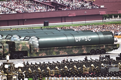 这一次,“东风-5C”液体洲际战略核导弹亮相天安门。东风浩荡、威震寰宇,“东风-5C”的打击范围覆盖全球。