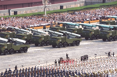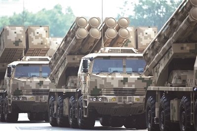 | 反舰导弹方队:打击海上之敌的“尖兵利器” ■鹰击出鞘,叱咤海空。反舰导弹方队由鹰击-15导弹和鹰击-19、鹰击-17、鹰击-20高超声速导弹编成。这4型反舰导弹可部署在舰载机、水面舰艇、潜艇等多种平台,射程远、速度快、毁伤强,是打击海上之敌的“尖兵利器”。 |