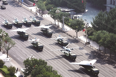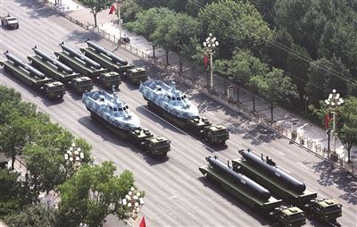 | 高超声速导弹方队:全天候作战的新型杀手锏 ■以快制强,极速打击。高超声速导弹方队受阅的鹰击-21、东风-17、东风-26D导弹,飞行速度快、突防能力强、命中精度高,是具备全天候作战能力的新型杀手锏。 |