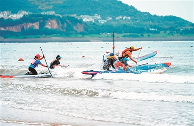 ■9月19日,2025年第五届亚洲皮划艇联合会海洋皮划艇锦标赛在青岛石老人海水浴场开幕。本次赛事将持续至9月21日,吸引来自亚洲10个国家和地区的300名运动员参赛。其中,长距离项目包括海洋皮艇、海洋独木舟、桨板,短距离项目为石老人沙滩冲刺。 衣 涛 摄影报道