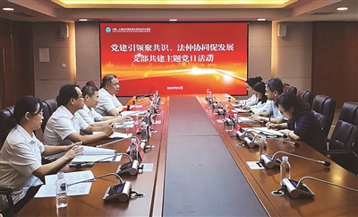 ■为探索基层党建工作新思路,实现“组织共建、队伍共育、资源共享、难题共解”,日前,胶州法院上合示范区人民法庭支部与上合示范区管委会综合二部支部、青岛仲裁委员会办公室仲裁二处支部联合开展党建共建活动,签署党建共建协议,开展“党建引领聚共识 法仲协同促发展”主题党日。