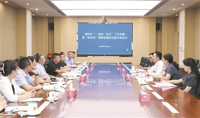 ■近日,城阳区法院组织召开“一商会一法官”工作机制暨“和事佬”调解机制深化提升座谈会。
