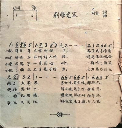 在1943年胶东五四文学艺术创作大比赛中,时任胶东军区第十三团第三连政治指导员的刘贤,凭借这首《别学老宋》荣获第一名,奖金30元北海币。