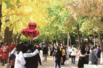 ■八大关的步道上,前来打卡的市民游客“扎堆”。