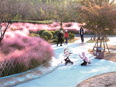 ■浮山森林公园连片的粉黛乱子草迎来盛花期,为山林增添了一抹梦幻色彩。 刘 栋 摄