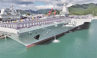 十一月的三亚,海阔天高,碧波浩瀚。军港内,福建舰踏海而立、满旗高悬,山东舰伏波相伴,来自海军部队和航母建设单位的代表2000余人在码头整齐列队,气氛隆重热烈。
