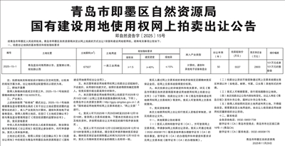 青岛市即墨区自然资源局国有建设用地使用权网上拍卖出让公告