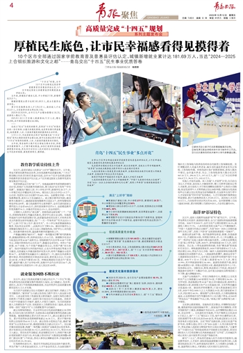 ~~~10个区市全部通过国家学前教育普及普惠县评估认定,城镇新增就业累计达181.69万人,当选“2024—2025上合组织旅游和文化之都”……青岛交出“十四五”民生事业优质答卷