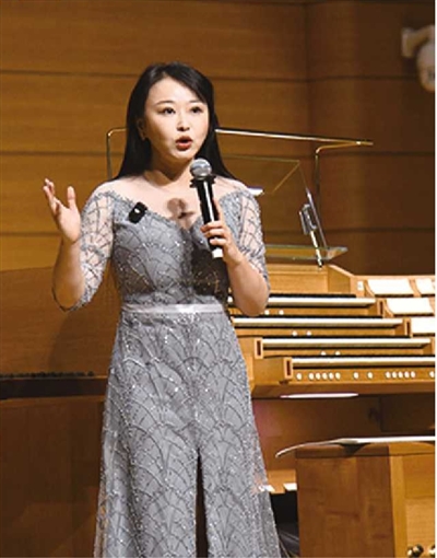 ■音乐会现场,沈媛为观众普及管风琴知识。 王 雷 摄