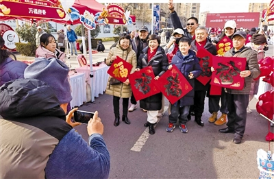 在“万福迎春”书法惠民摊位前,城阳区书法家协会的李延动挥毫泼墨,将一个个“福”字送到市民手中。“马上就要过年了,能在‘海洋大集’上和市民面对面,把书法的技艺、新春的喜庆、马年的吉祥送给市民朋友们,非常高兴。”李延动话音刚落,一旁的市民热情地竖起大拇指。