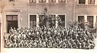 笔者持照片两次到青岛铁路中学调查,证实日军出发前的合影地点是在该校第一教学楼前。照片中共有105个全副武装的日本官兵,个个面目可憎。除5人徒手外,每人手持步枪,腰挂刺刀,身背行军包、子弹袋和钢盔。他们是1939年5月20日血洗崂山白云洞的刽子手,第二排中间身着呢料军装手持军刀者,就是惨案的罪魁祸首岛村。