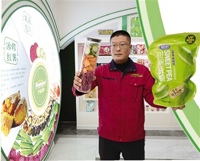 目前,青岛金叶食品有限公司以真空低温脱水工艺制作并推出甜豌豆、香菇、秋葵等30多款果蔬脆产品。凭借专利认证技术,食材原有的色泽与营养成分得以保留。公司生产的冰烤红薯系列,也是年轻人餐桌上的“新宠”。