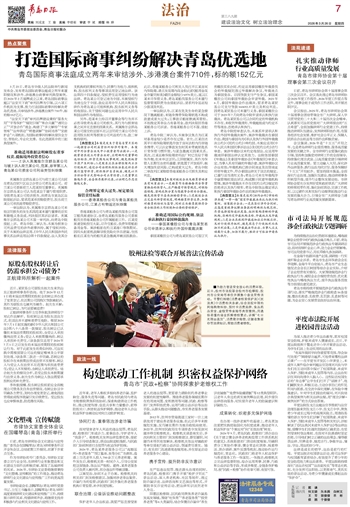 热点聚焦~~~青岛国际商事法庭成立两年来审结涉外、涉港澳台案件710件,标的额152亿元