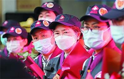 3月31日,李兰娟院士和团队成员准备返程。国家卫健委组建的 “援鄂重症新冠肺炎诊治李兰娟院士医疗队”由来自浙大一院和树兰(杭州)医院的医护人员组成,包括感染病学、重症医学、院感、护理等专业的人员。新华社发