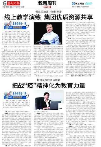 孙睿:疫情期间的网课的实践与探索,加上5G时代的到来,又逢实验高中集团化办学,这为下一步集团化办学如何实现实验高中优质教育资源的同步共享提供了提前的尝试和演练。也将助力实高在未来的教育教学过程中对集团内学校实现随时随地的干预和指导,既能实现面上的,又能实现具体到人的、个性化的指导和帮助:互联网等科技对教育的影响在经历了长时间的 “有劲使不上”的状态即将实现由量到质的飞跃。 青岛晚报/掌上青岛/青网 记者 赵黎