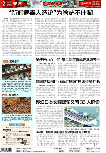 新华社东京4月22日电 据日本广播协会(NHK)电视台22日报道,停泊在日本长崎的意大利船籍邮轮“歌诗达大西洋”号又有33人被确诊感染新冠病毒。这艘邮轮没有乘客,共有623名船员。NHK电视台21日报道说,“歌诗达大西洋”号有一名船员20日被确诊感染新冠病毒。长崎市方面21日对这名确诊者的密切接触者57人进行采样检测,检测结果显示又有33人感染新冠病毒。据报道,这艘邮轮是为了修理而停泊在位于长崎市的三菱重工长崎造船所香烧工厂,因此船上没有乘客。首名确诊船员14日出现发热症状,20日被确诊并被隔离在邮轮上房间内。日本厚生劳动省和国立感染症研究所已派人前往长崎协助处理邮轮上的疫情。
