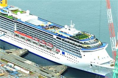 4月21日在长崎拍摄的“歌诗达大西洋”号邮轮。新华社发