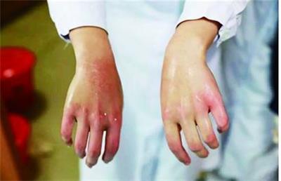 有研究显示,医护人员中乳胶诱导I型过敏反应比普通人群高3~3.5倍。医护人员因为工作关系,经常需要带乳胶手套,手部皮肤容易出现接触性皮炎。由于工作关系需要经常洗手,手部消毒杀菌剂的使用会使皮肤损伤更加恶化。