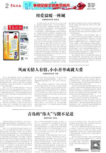 我想,换成你我,换成任何一个青岛人都会这样做。赠人玫瑰,手有余香。举手之劳,让人感动。莫以善小而不为,帮助别人的过程,也会令自己感到快乐和充实,让我们生活的这座城市变得更加有温情。就像那三个在暴雨夜向陌生人伸出援手的年轻人,或许他们自己认为只是举手之劳,但是对于身处异乡的陌生人来说,这场爱心接力收获的不仅仅是感动,更是对青岛这座城市的认可和赞美。