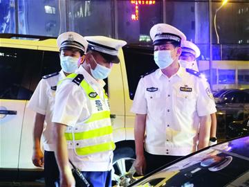 青岛市公安局交通警察支队支队长李世明(右)督导夜查行动。刘卓毅 摄市北交警在新疆路查获了一名酒司机。 刘卓毅摄市南交警在福州南路设卡夜查。刘卓毅 摄交警准备对一名司机进行呼气式酒精检测。