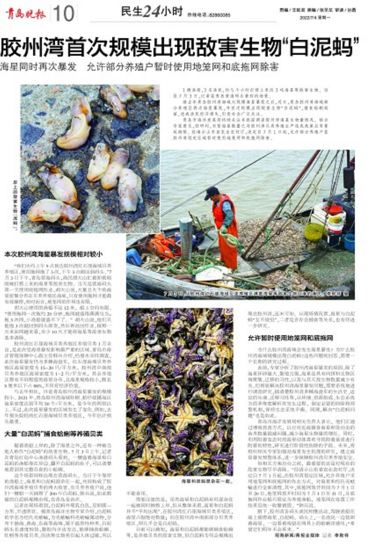 胶州湾首次规模出现敌害生物“白泥蚂”