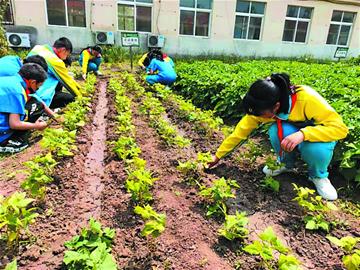 在做好家务劳动的同时,胶州市还鼓励孩子参与多样化的生产劳动,让学生走进菜圃、农田、智能大棚,通过锄地、播种、采摘等形式,开展丰富多彩的生产劳动,培养学生的“亲农”意识,获得良好的劳动体验。