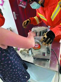 经过10多分钟的紧张救援,被困女子将手指抽回,简单包扎后前往医院做进一步治疗。(观海新闻/青岛晚报 记者 刘卓毅 通讯员 万淑慧)