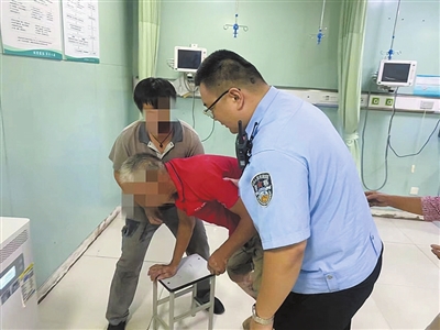 交警护送男青年就医。