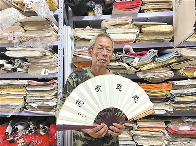 老人街头书写扇面,热心市民纷纷慷慨解囊。