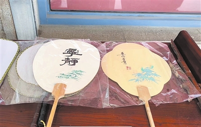 老人能根据市民的要求创作扇面,字迹、画风清雅淡然。