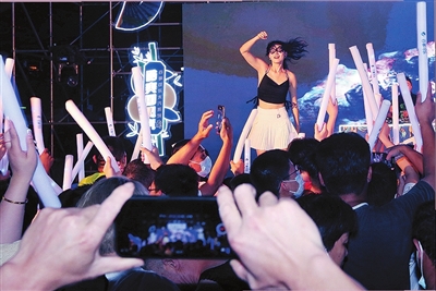 劲歌热舞的美女。
