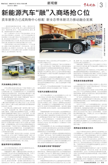 变则通,汽车业在变,造车新势力们创造性的开辟销售新模式,带来了新能源汽车的新风口。购物中心也在变,通过引入汽车新业态,为商业发展注入新活力。 观海新闻/青岛晚报 记者 李沛