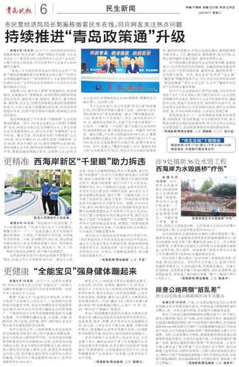 “青岛上半年的民营经济运行情况怎么样?”“采取了哪些措施确保惠企政策惠及市场主体?”“民营企业有哪些融资途径?”“如何帮助中小企业更好利用国际国内市场?”众多网友对民营和中小企业的生存发展问题表示关注。