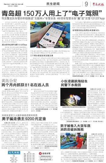 去年年底,李沧交警在北崂路夜查时,市民姜先生未携带驾照,他掏出手机,通过“交管12123”App出示了自己的电子驾照让交警查验。“随着电子检验合格标志、电子驾驶证业务的开通,让广大群众充分体验到了‘让数据跑腿’的好处。”车管所民警告诉记者,目前,车管所共办理电子驾驶证审核超过150万笔。随着互联网预选号牌、车辆转籍业务、委托业务办理、老年人代办业务办理等业务不断推出,群众能享受到的便利更多了。
