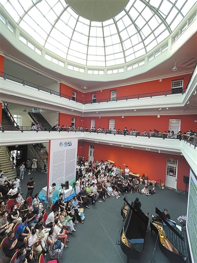 坐在美术馆罗马厅的一楼,近距离看音乐才子拨动琴弦,吹奏管乐,可以清晰地看到他们眼睛里传递的音乐情绪;一抬头,看罗马厅的玻璃穹顶透下的光线,那些音符仿佛在光线里悦动,可以带着思绪延伸到不同时空……“乐动红墙”音乐季,让青岛的观众和外地的游客上了一堂堂更为生动的音乐艺术课。建筑本身是美,艺术展览是美,音乐演奏是美,中西文化碰撞也产生美——恰如音乐季其中一场的命名“和而不同,美智与共”。