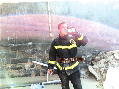 “一推开门,里面有六个燃气罐,其中一个的阀门被火烧坏了,一直在喷火。”刘相林称,身后抱水枪的同事们不断在给燃气罐浇水降温并控制周边火势,给他和两个同事提供掩护。刘相林瞅准机会拎起两个燃气罐往外冲,最终排除了二次爆炸险情,火灾也很快被扑灭。