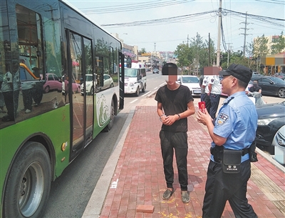 本报8月22日讯 8月15日中午12时30分许,上马派出所民警沿岙东路向北巡逻至红岛医院对面的930公交站附近,发现一辆公交车停在路边,车窗玻璃碎了满地,现场聚集了不少围观人员。民警立刻上前询问,司机孙师傅介绍,车玻璃是被一名小伙用砖头故意砸碎的,小伙沿着路往南跑了。