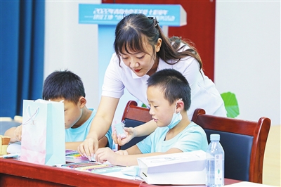 研学参观之余,依托项目部党员活动室、“红色驿家”或农民工服务站,爱心暑托班还为孩子们安排丰富多彩的手工手绘、绘本阅读、书法学习等室内体验课程。