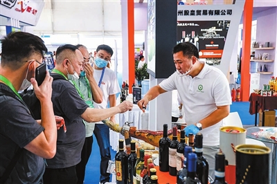 宁夏枸杞闻名全国。在位于3号馆的黄河流域特色产业展馆,宁夏展台展出的枸杞产品吸引了众多参展观众的注意。宁夏华信达生物科技有限公司展出了其推出的枸杞产品。公司负责人介绍,华信达推出的枸杞产品全部来自宁夏中宁,中宁有大面积的戈壁滩,日照时间长,因此其出产的枸杞质量上乘,深受国内外消费者的喜爱。目前公司出产的枸杞仅有7%用于出口,希望通过参加本次博览会拓展跨境电商贸易新渠道,把宁夏枸杞卖到更多的国家。