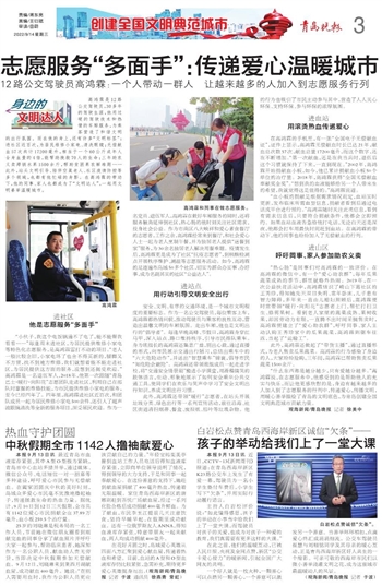 本报9月13日讯 最近青岛市血液库存紧张,其中A型O型极为紧缺,青岛市中心血站多措并举,通过媒体、微信公众号、电话短信一对一招募等多种途径,呼吁爱心市民参与无偿献血。在阖家团圆庆中秋的美好时刻,岛城众多爱心市民毫不犹豫地撸起袖子,传递拯救生命的热血力量。据统计,9月10日到12日三天假期,全市共有1142位爱心市民捐献全血37.89万毫升,血小板259.5个治疗量。