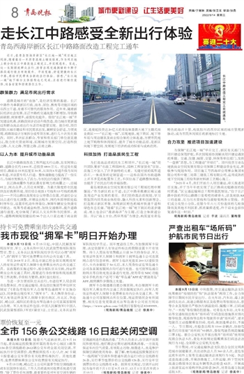 长江中路路面改造工程西起太行山路,东至阿里山路,道路全长约1400米,总投资4800万元。经过优化提质后,路面由23米拓宽至30米,从双向6车道升级为双向8车道,并设置专用人行道。整体通勤能力提高了一倍左右,为城市发展注入了活力,为市民出行提供了便利。