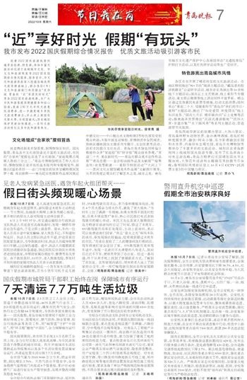 跟着2022国庆旅游线路玩遍青岛经典、特色游,参加丰富文旅活动沉浸于岛城城市文化。市文化和旅游局发布2022国庆假期综合情况报告,报告显示,市文化和旅游局在深入挖掘岛城优质文旅资源基础上,联合各区(市)文化和旅游部门共同推出“庆华诞 赏金秋 ‘近’享国庆好时光”青岛2022国庆旅游线路,为广大市民和游客提供便捷服务和贴心指南;发放190万元市级文旅惠民消费券,进一步激发城乡居民文旅消费潜力;浮山湾上演国庆光影大秀,为祖国献礼;历史城区保护更新加快推进,一系列文旅活动吸引众多市民和游客参与。