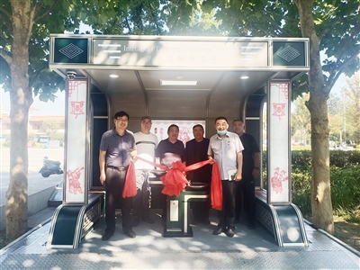 景观饮水亭设计采用全不锈钢外壳、一体化组合设计,融合了胶州大秧歌、茂腔等胶州传统文化元素,外型新颖、美观,占地空间小,辨识度高,便于市民寻找,为城市景观增添了一抹亮色。